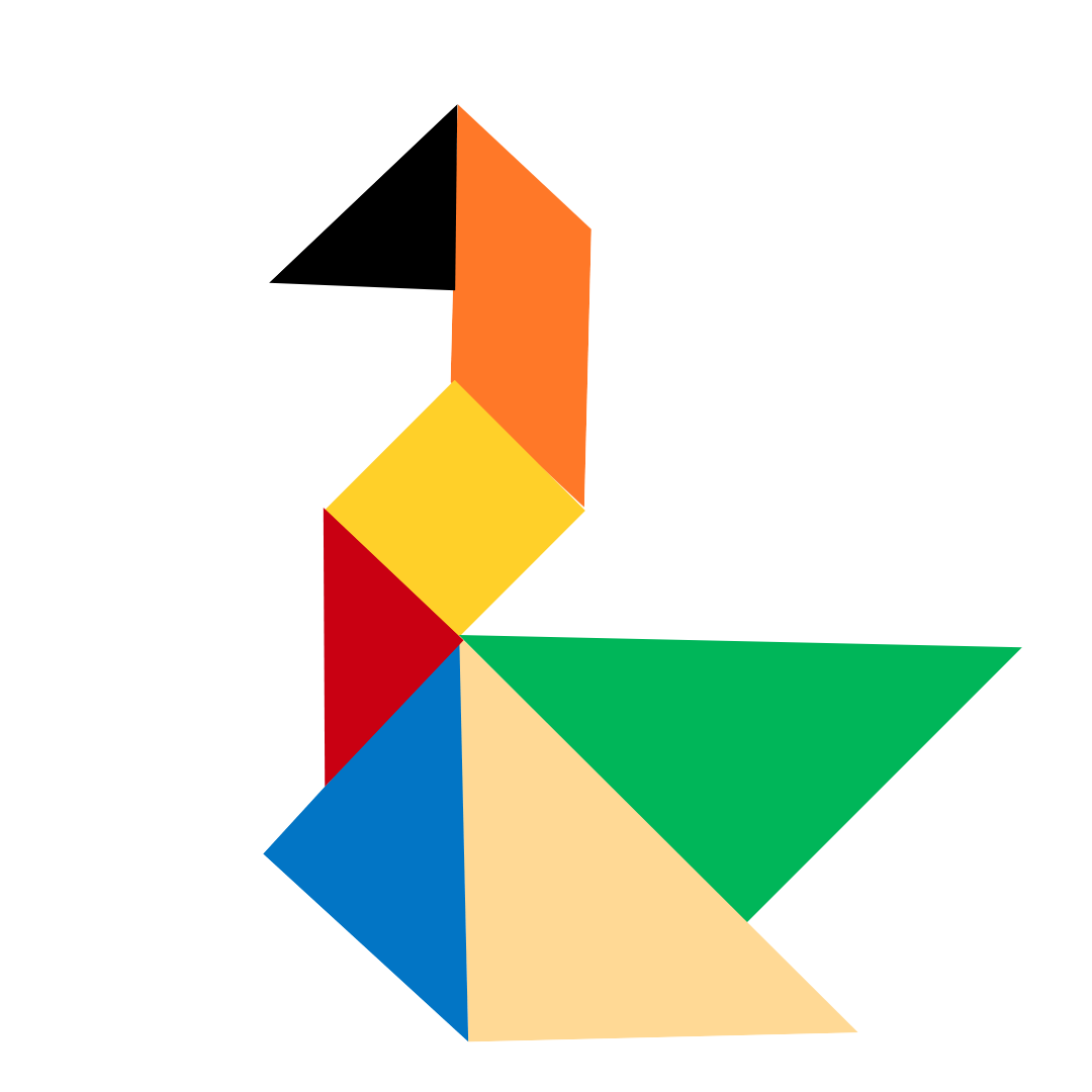 El tangram es un rompecabezas clásico de origen chino formado por siete piezas geométricas llamadas tans. Con ellas se pueden crear infinitas figuras: animales, personas, objetos, letras… Además de ser muy divertido, estimula la lógica, la creatividad y la percepción espacial.