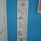 En la parte inferior y superior lleva dos tiras de madera. La tira superior tiene una cuerda para poder colgar de manera muy sencilla en cualquier parte de la pared. La tira inferior hace de peso para que el medidor quede bien estirado.