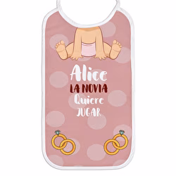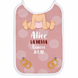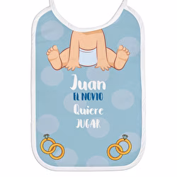 En las bodas, la costumbre es hacer regalos a los invitados. Y no solo a los adultos: también los niños, y los bebés, tienen que tener su detalle o su sorpresa. En este caso os proponemos, para los más peques de la boda, unos divertidos baberos personalizados con textos o detalles de la boda. Puede ser una frase graciosa relativa al enlace, así como los nombres de los novios o la fecha, si así lo deseáis. Incluso podéis ir más allá y poner el nombre del bebé en el babero, para que sea un detalle de boda totalmente personalizado para el bebé.