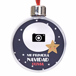 Para que ese momento tenga un protagonismo especial en tu decoración navideña, te proponemos la bola para árbol "Mi primera Navidad". Elige una foto, un texto, un nombre, una frase, un dibujo y/o un diseño que te encante, y déjate maravillar por el resultado.