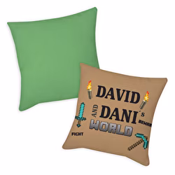 Perfectos para descansar después de una larga sesión de minado o para decorar tu setup gaming, estos cojines son el toque final para cualquier fanático de Minecraft. Imagina un cojín con tu nombre en letras pixeladas o un arte de tu última construcción. Es como poner un beacon de estilo en tu habitación, ¡y tú decides cómo brillar! Personalízalos y haz que tu chill spot sea tan único como tu seed favorito.
