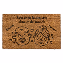 Haz que los abuelitos se sientan especiales con un felpudo personalizado. Podrán presumir ante todos sus vecinos y visitas de su bonito regalo y de que son unos abuelos increíbles. Nuestros felpudos personalizados son una manera divertida y única de mostrar su amor y cariño hacia sus nietos y nietas, y de lo orgullosos que están de su condición de abuelos.