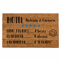 En nuestra tienda online, te ofrecemos una experiencia de compra fácil y segura. Solo tienes que seleccionar el diseño que más te guste, personalizarlo con los nombres deseados y realizar tu pedido. Nos encargaremos de imprimir el diseño en el felpudo y enviarlo a la dirección que nos indiques.