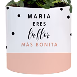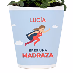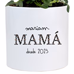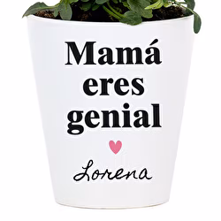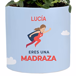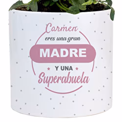 Cada modelo combina un estilo cuidado con mensajes y composiciones que transmiten cariño, cercanía y complicidad. Puedes personalizar la maceta con una foto de mamá con sus hijos o nietos, añadir su nombre o incluir una frase única que refleje todo lo que significa para vosotros.